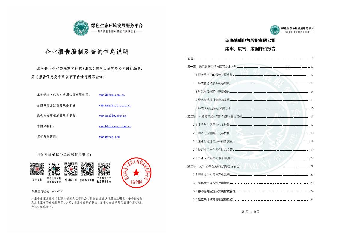 珠海博威電氣股份有限公司_廢水、廢氣、廢固評價報告